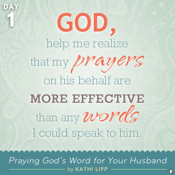 I want to be the kind of wife who spends twice as many words praying to God on my husband’s behalf as I do offering advice to my man. I know that what my husband thinks is nagging will drive a wedge between us, but when I pray for him, it draws us closer together.